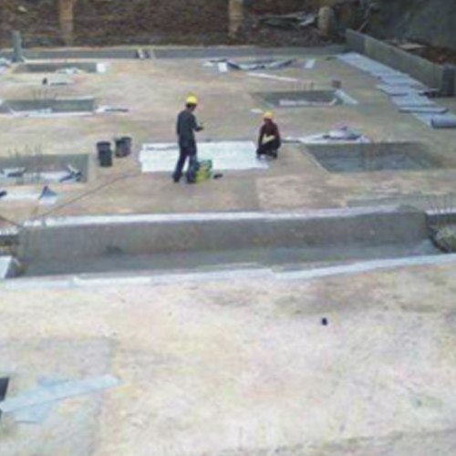 用橡皮刮板将高聚物改性沥青胶粘剂或冷玛帝脂等冷粘剂均匀涂刷在基层表面,...
